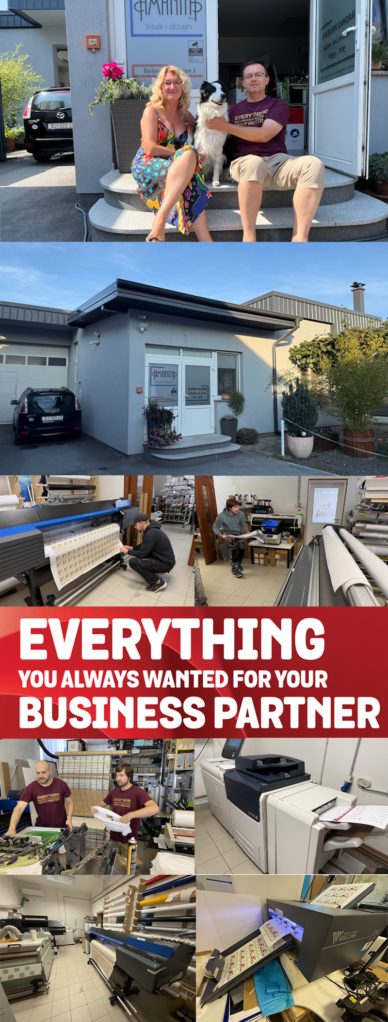 Amanita d.o.o. je obiteljska tiskara. Od 1992. nudimo vrhunske usluge dizajna i tiska uz brzu izradu i isporuku uz vrhunsku kvalitetu. Obratite nam se za majice, naljepnice, vizitke, plakate, dtf preslikače, promo materijale s tiskom i drugo. Tiskara Amanita je član FESPA HRVATSKA, a direktor Igor Oros je član Upravnog odbora.