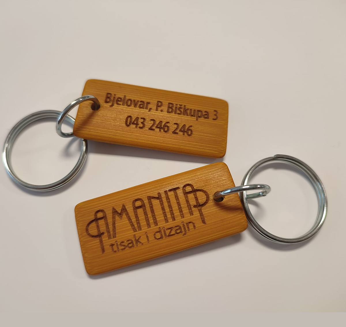 Laserskim graviranjem i izrezivanjem izrađujemo personalizirane privjeske od drveta, pleksiglasa, EVA gume i sličnih materijala. Zahvaljujući visokoj preciznosti laserske tehnologije, svaki oblik, natpis ili logotip izrađen je s iznimnom točnošću i čistim rubovima. Ova tehnika omogućuje kreativne i jedinstvene proizvode - od promotivnih privjesaka do unikatnih suvenira ili dekorativnih dodataka. Mogućnost kombiniranja različitih materijala i boja pruža potpunu slobodu dizajna. Rezultat je lagan, moderan i izdržljiv proizvod koji savršeno predstavlja vaš brend ili ideju.